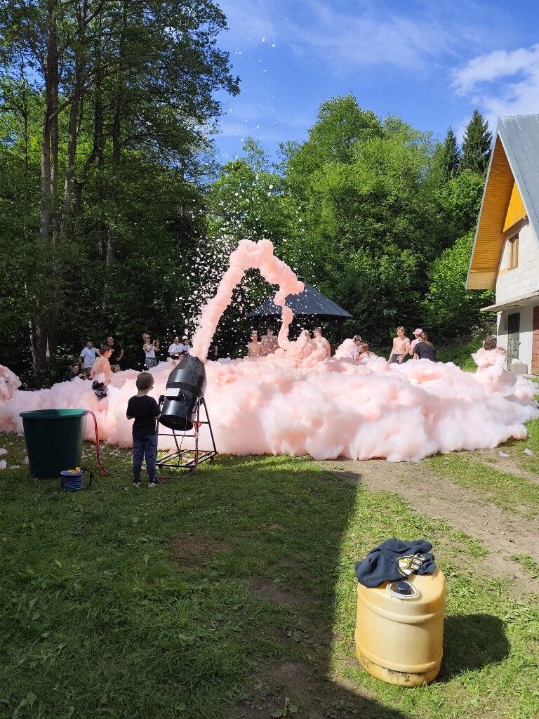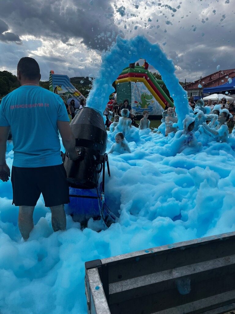 Penostroj je zariadenie ktoré sa plní špeciálnou certifikovanou náplňou a vytvára penový efekt. Penové delo vyrába penu ktorá je zdraviu nezávadná a nezanecháva stopy na oblečení. Potrebné je napojenie na zdroj elektrickej energie (230 V) a prítok vody hadicou. Mega penová párty z 210 litrov emulzie. Používame výkonné penové delo a iba certifikovanú najkvalitnejšiu penovú emulziu nezávadnú, jemnú a vhodnú pre detičky aj dospelých. Ponúkame aj farebnú penovú párty: červená, modrá, zelená, žltá, fialová, oranžová, ružová (podľa dostupnosti).